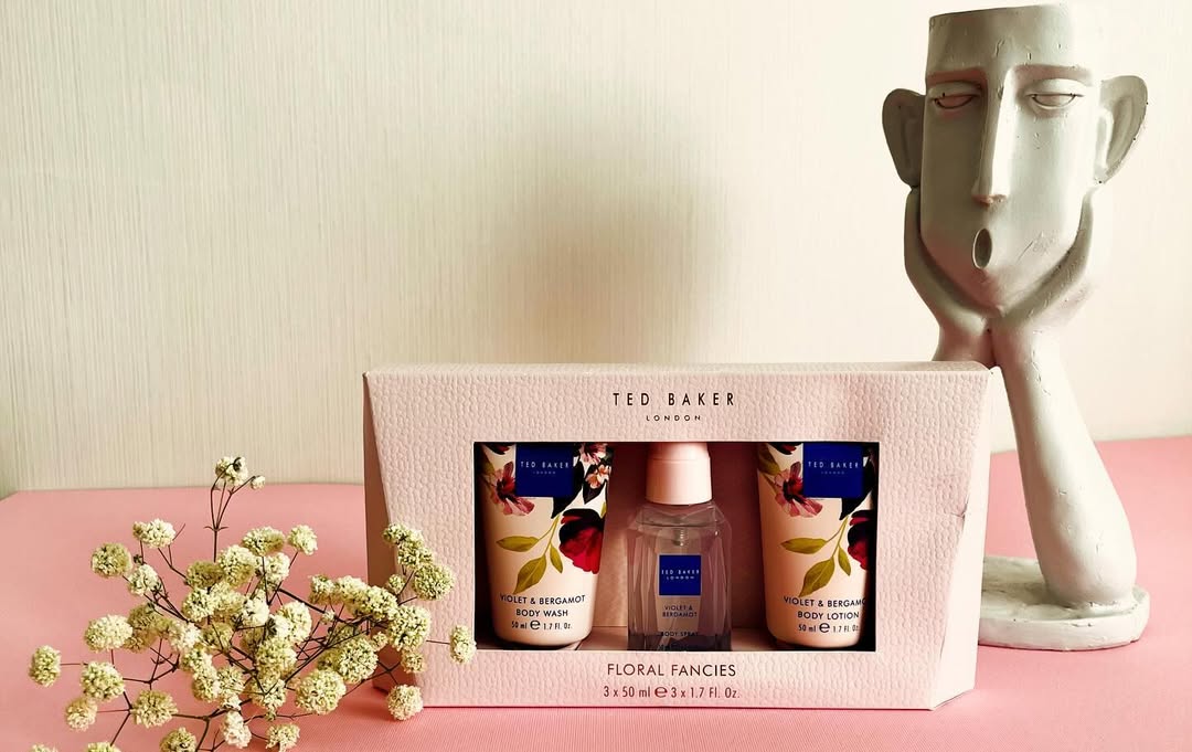 گیفت ست بدن Ted Baker رایحه بنفشه و ترنج مرطوب کننده تسکین دهنده و لطافت بخش پوست مناسب انواع پوست میست بدن لوشن بدن شوینده بدن